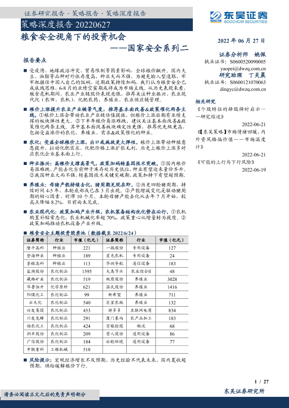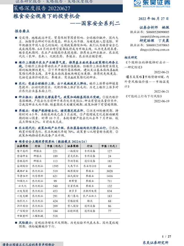 【东吴证券】【20220627】策略深度报告:国家安全系列二,粮食安全视角下的投资机会-27页