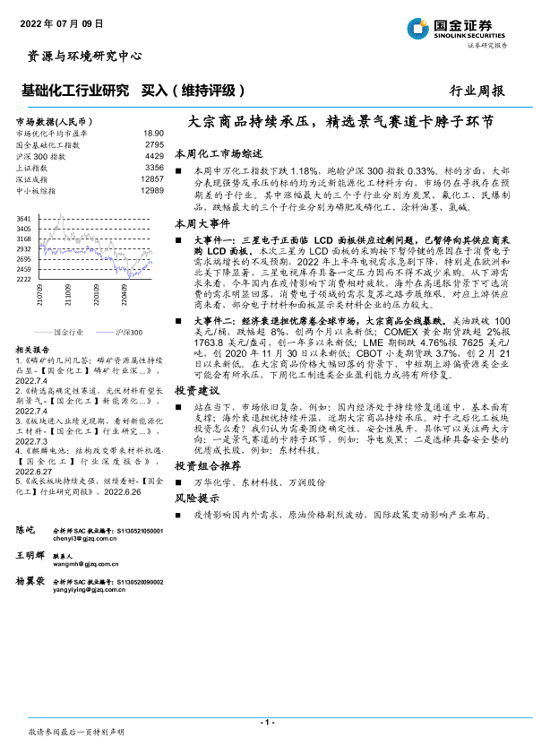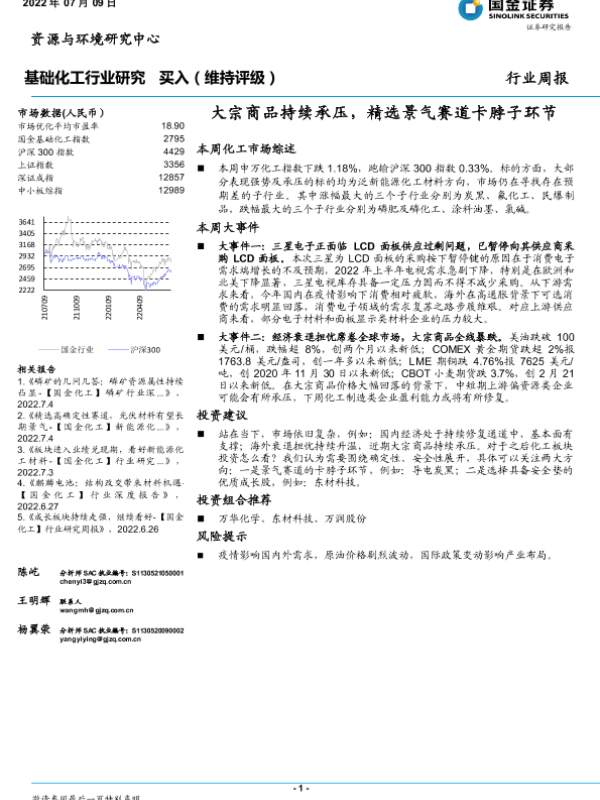 【国金证券】【20220709】基础化工行业研究:大宗商品持续承压,精选景气赛道卡脖子环节-24页