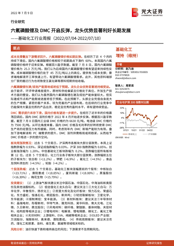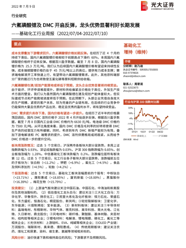 【光大证券】【20220709】基础化工行业周报:六氟磷酸锂及DMC开启反弹,龙头优势显著利好长期发展-25页