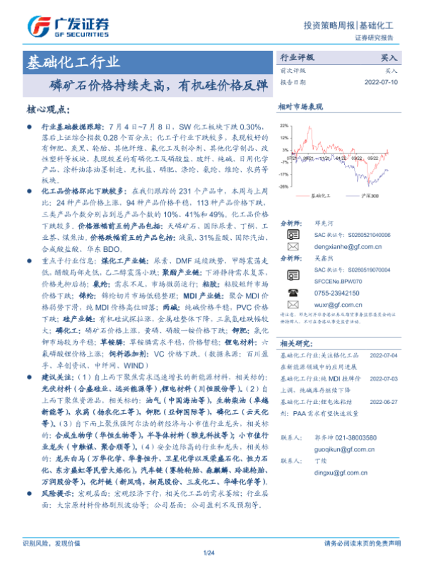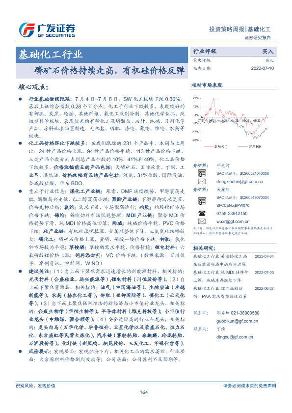 【广发证券】【20220710】20220710-广发证券-基础化工行业投资策略周报:磷矿石价格持续走高,有机硅价格反弹-24页