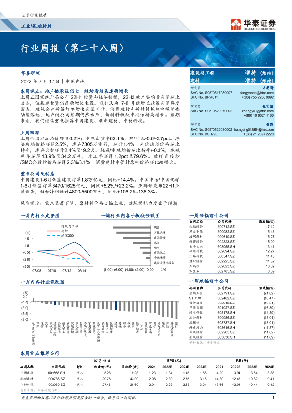 【华泰证券】【20220717】20220717-华泰证券-工业基础材料行业周报(第二十八周)-15页