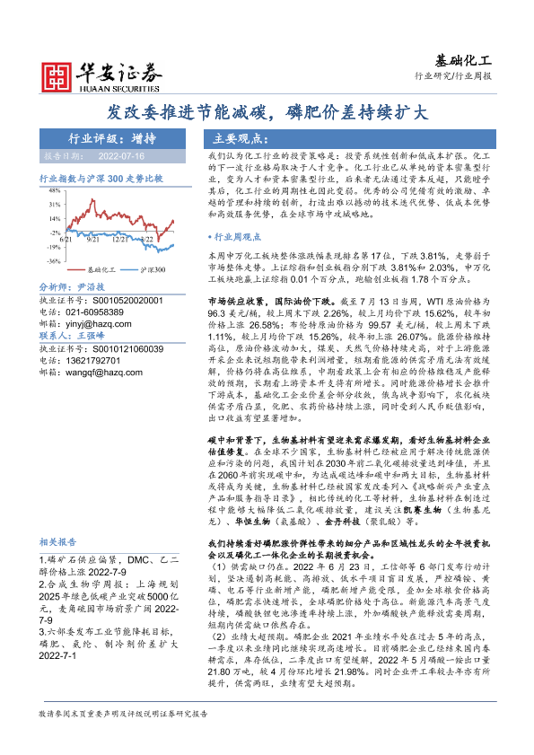 【华安证券】【20220716】基础化工行业周报:发改委推进节能减碳,磷肥价差持续扩大-42页