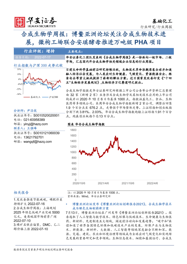 【华安证券】【20220717】基础化工行业合成生物学周报:博鳌亚洲论坛关注合成生物技术进展,微构工场联合安琪酵母推进万吨级PHA项目-18页