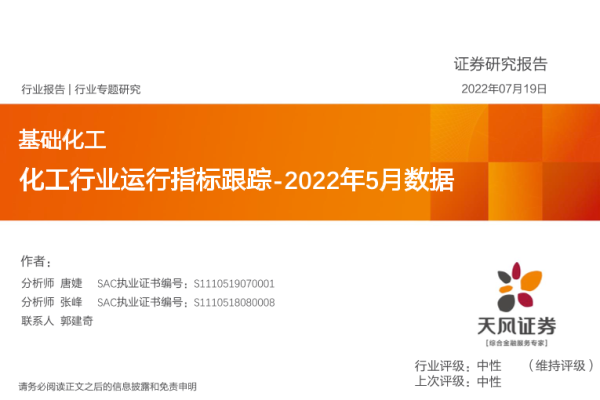 【天风证券】【20220719】基础化工行业专题研究:化工行业运行指标跟踪-2022年5月数据-35页
