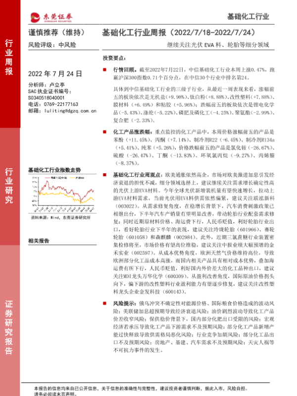 【东莞证券】【20220724】20220724-东莞证券-基础化工行业周报:继续关注光伏EVA料、轮胎等细分领域-12页