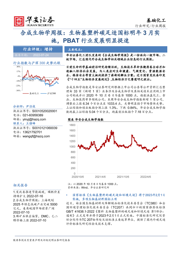 【华安证券】【20220724】合成生物学周报:生物基塑料碳足迹国标明年3月实施,PBAT行业发展明显提速-21页