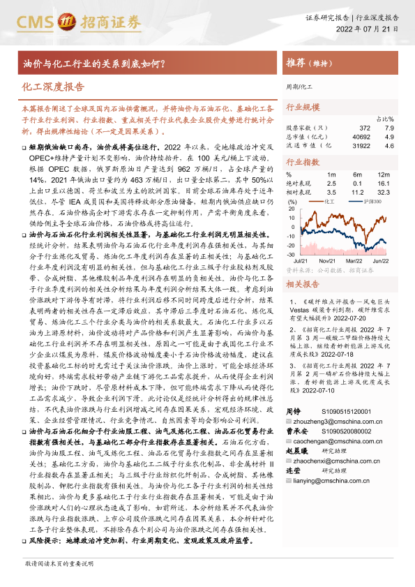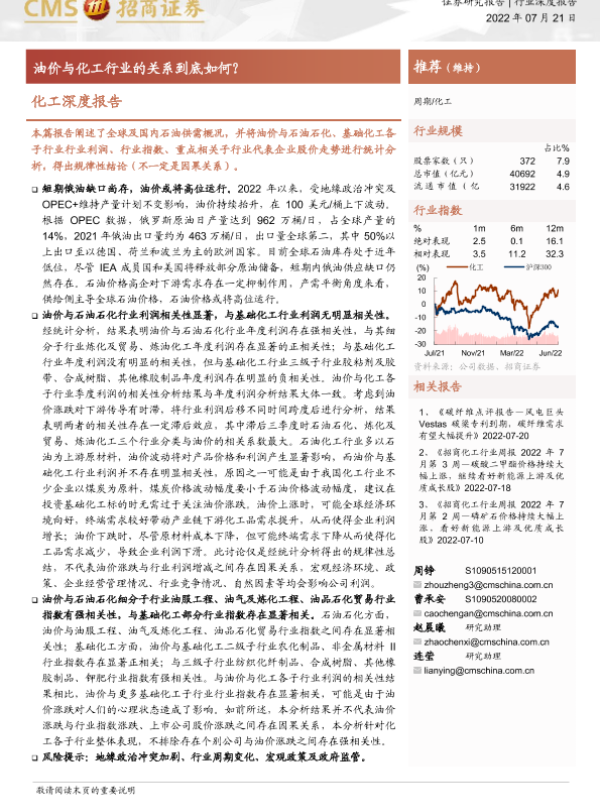 【海通证券】【20220721】化工深度报告:油价与化工行业的关系到底如何?-62页