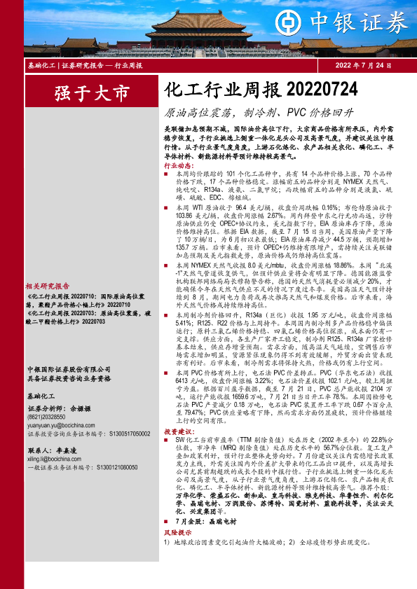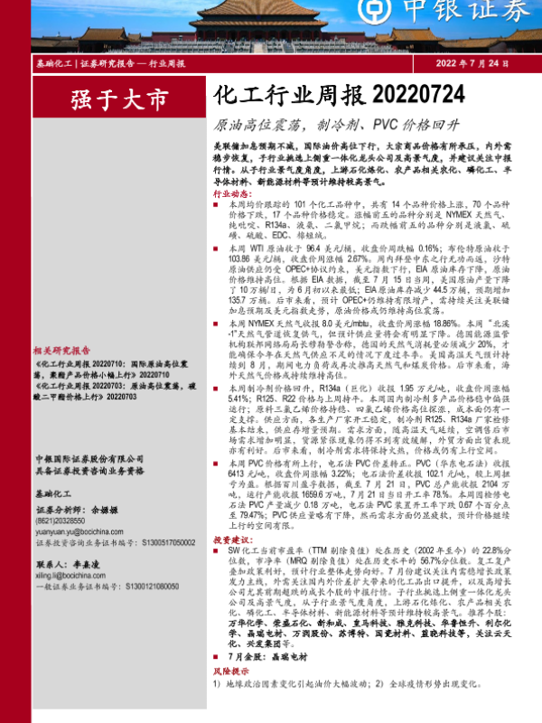 【中银证券】【20220724】20220724-中银证券-化工行业周报:原油高位震荡,制冷剂、PVC价格回升-16页