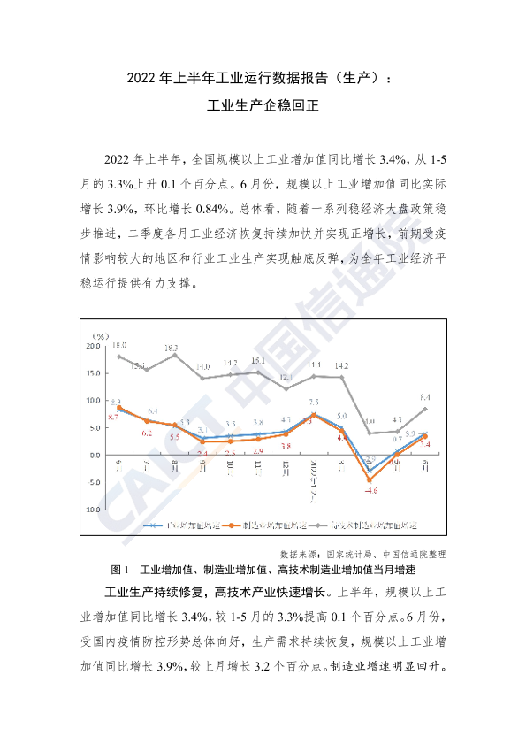 【中国信通院】【20220728】2022年上半年工业运行数据报告(生产):工业生产企稳回正-8页