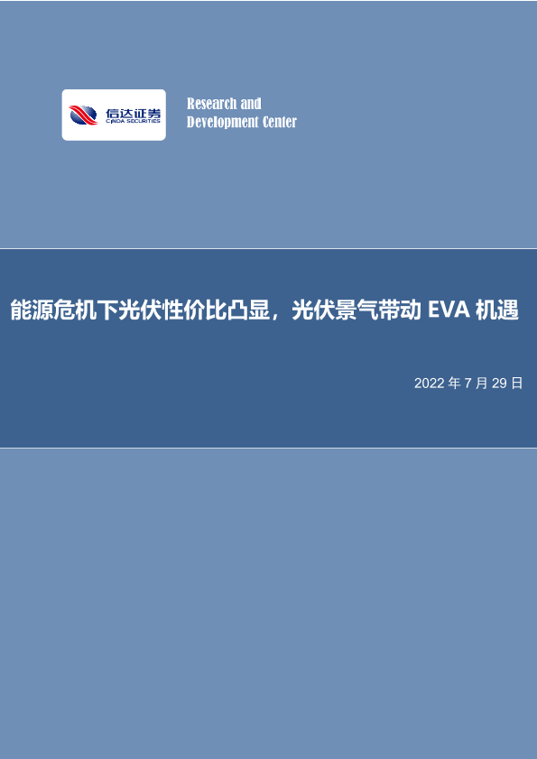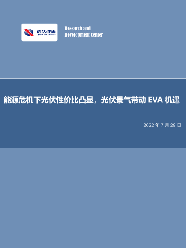 【信达证券】【20220729】化工行业:能源危机下光伏性价比凸显,光伏景气带动EVA机遇-27页
