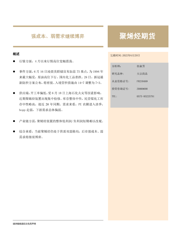 【大越期货】【20220629】聚烯烃期货:强成本、弱需求继续博弈-16页