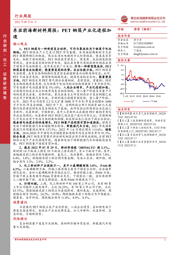 【东亚前海证券】【20220801】东亚前海新材料周报:PET铜箔产业化进程加速-23页