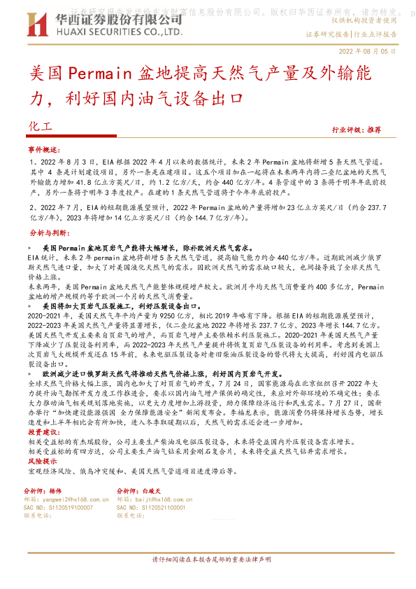 【华西证券】【20220805】Permain盆地提高天然气产量及外输能力,利好国内油气设备出口-3页