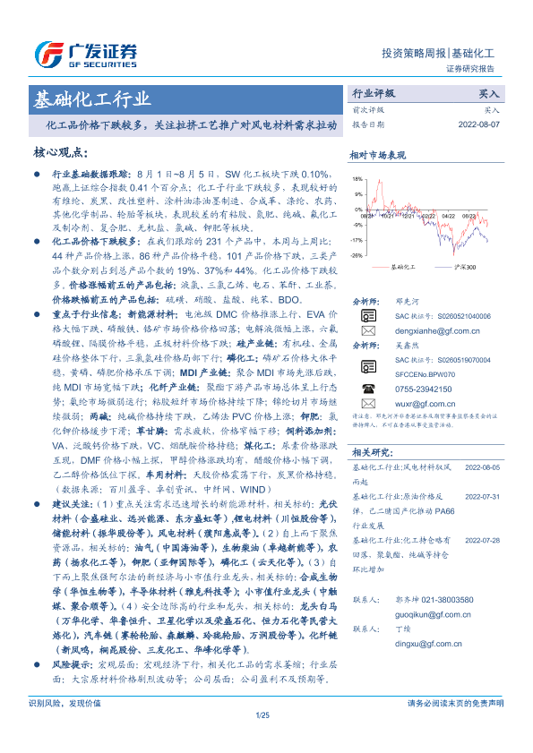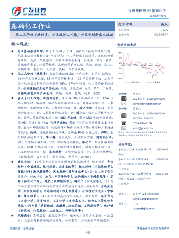 【广发证券】【20220807】基础化工行业投资策略周报:化工品价格下跌较多,关注拉挤工艺推广对风电材料需求拉动-25页