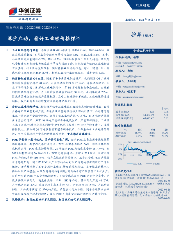 【华创证券】【20220814】20220814-华创证券-新材料周报:涨价启动,看好工业硅价格弹性-54页