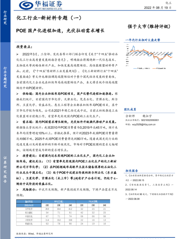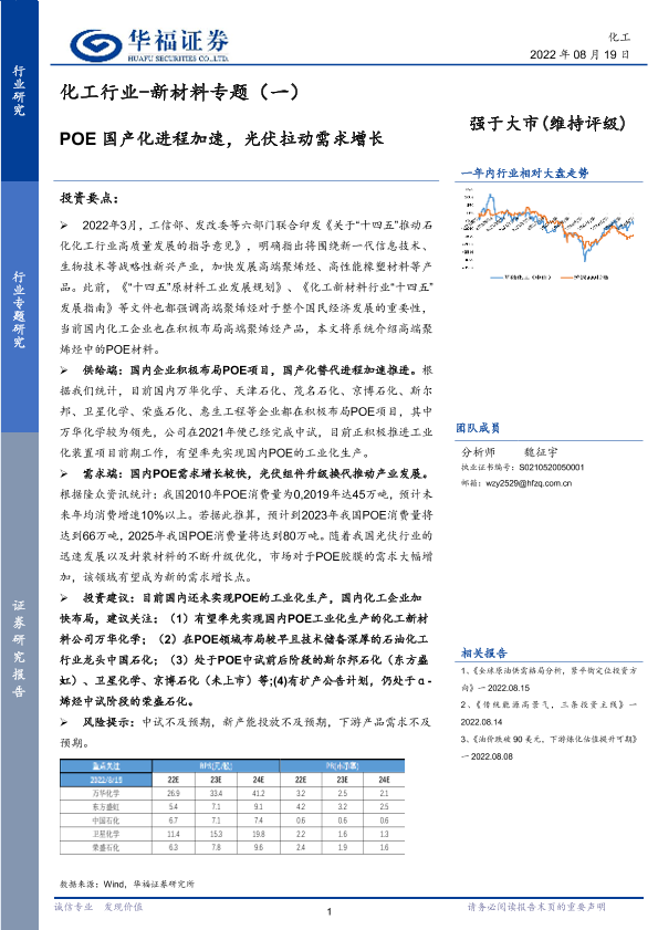 【华福证券】【20220819】20220819-华福证券-化工行业-新材料专题(一):POE国产化进程加速,光伏拉动需求增长-14页