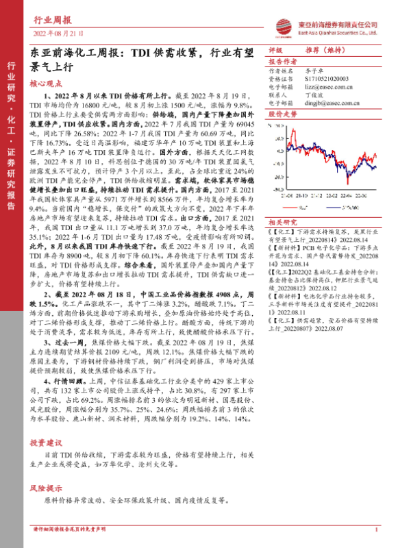 【东亚前海证券】【20220821】东亚前海证券-化工周报:TDI供需收紧,行业有望景气上行-23页