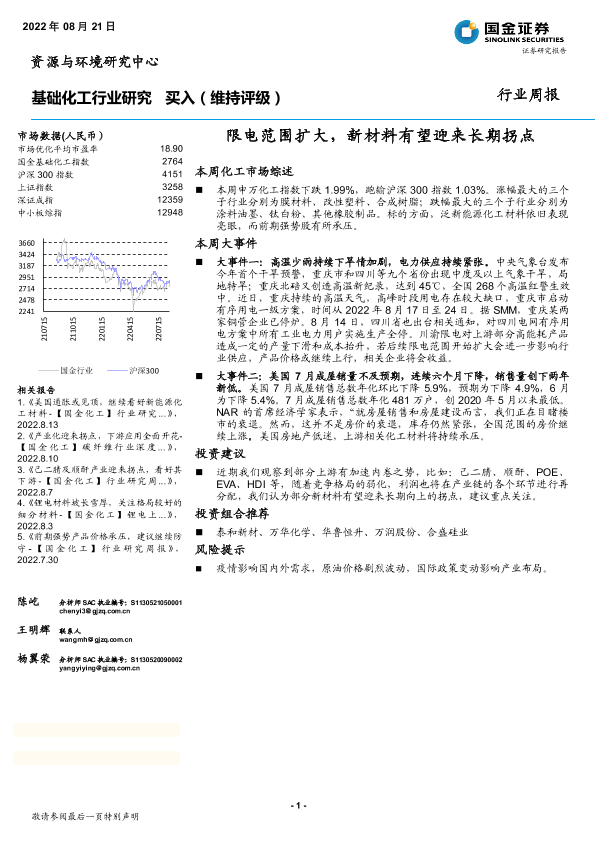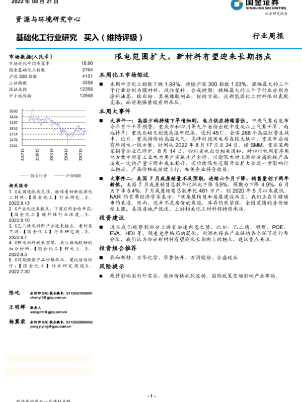 【国金证券】【20220821】基础化工行业研究:限电范围扩大,新材料有望迎来长期拐点-23页