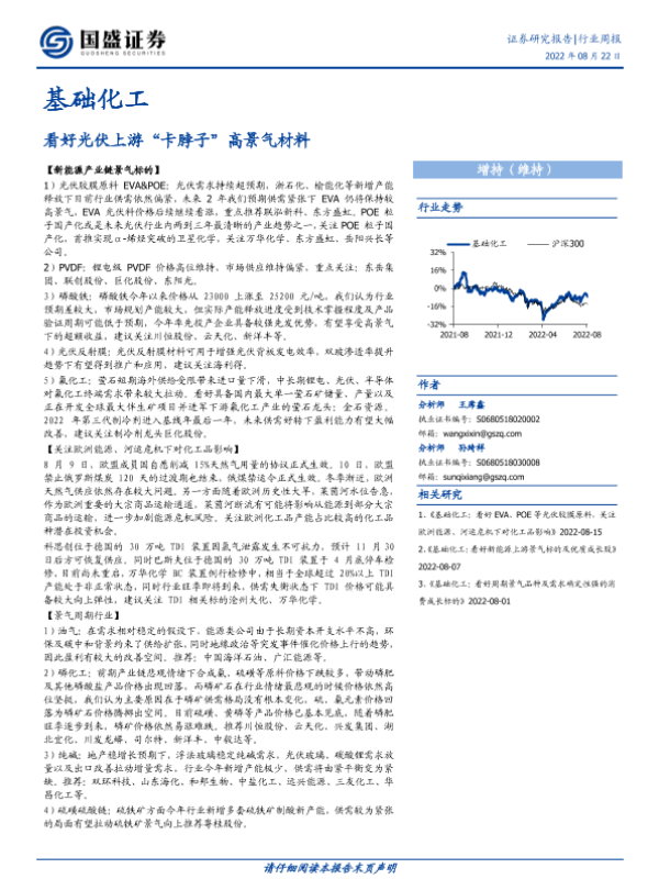 【国盛证券】【20220822】基础化工行业周报:看好光伏上游“卡脖子”高景气材料-14页