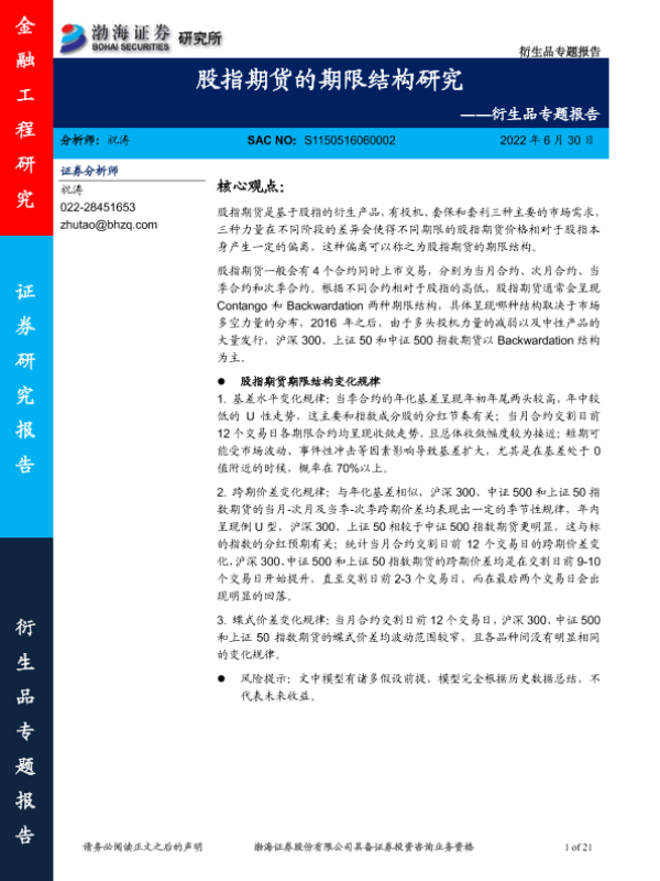 【渤海证券】【20220630】衍生品专题报告:股指期货的期限结构研究-21页