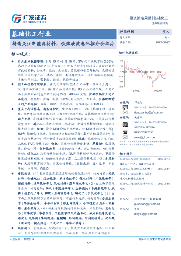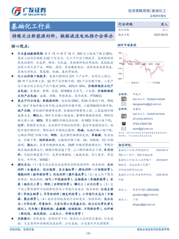 【广发证券】【20220822】基础化工行业投资策略周报:持续关注新能源材料,铁铬液流电池推介会举办-31页