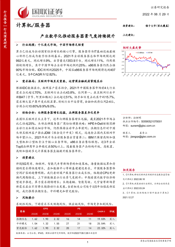 【国联证券】【20220629】计算机服务器行业:产业数字化推动服务器景气度持续提升-33页