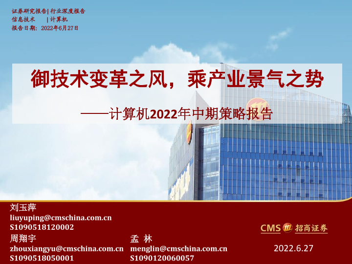 【海通证券】【20220627】计算机行业2022年中期策略报告:御技术变革之风,乘产业景气之势-63页