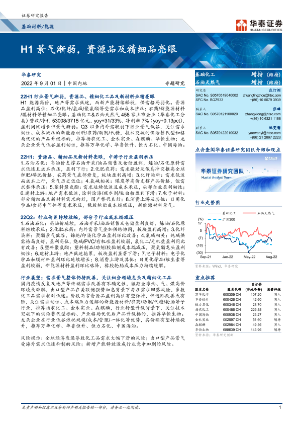 【华泰证券】【20220901】20220901-华泰证券-基础材料 能源专题研究:H1景气渐弱,资源品及精细品亮眼-16页