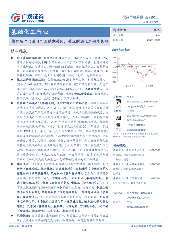 【广发证券】【20220905】俄罗斯“北溪-1”无限期关闭,关注欧洲化工供给扰动-25页