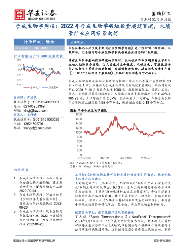 【华安证券】【20220910】2022年合成生物学领域投资超过百起,木质素行业应用前景向好-23页