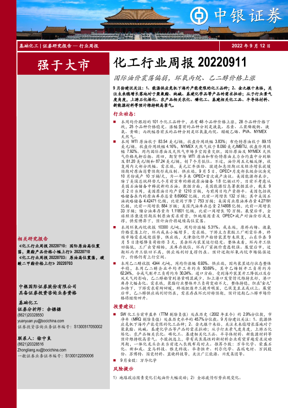 【中银证券】【20220912】20220912-中银证券-化工行业周报:国际油价震荡偏弱,环氧丙烷、乙二醇价格上涨-13页