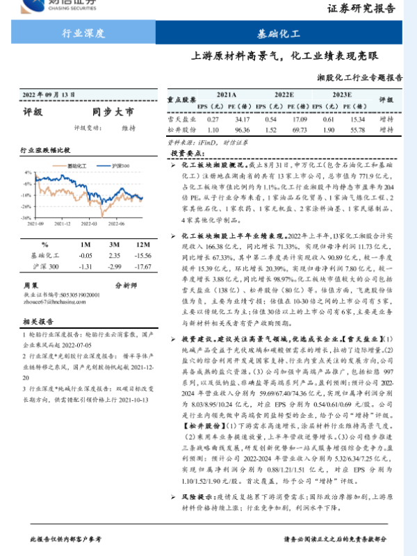 【财信证券】【20220913】20220913-财信证券-湘股化工行业专题报告:上游原材料高景气,化工业绩表现亮眼-22页