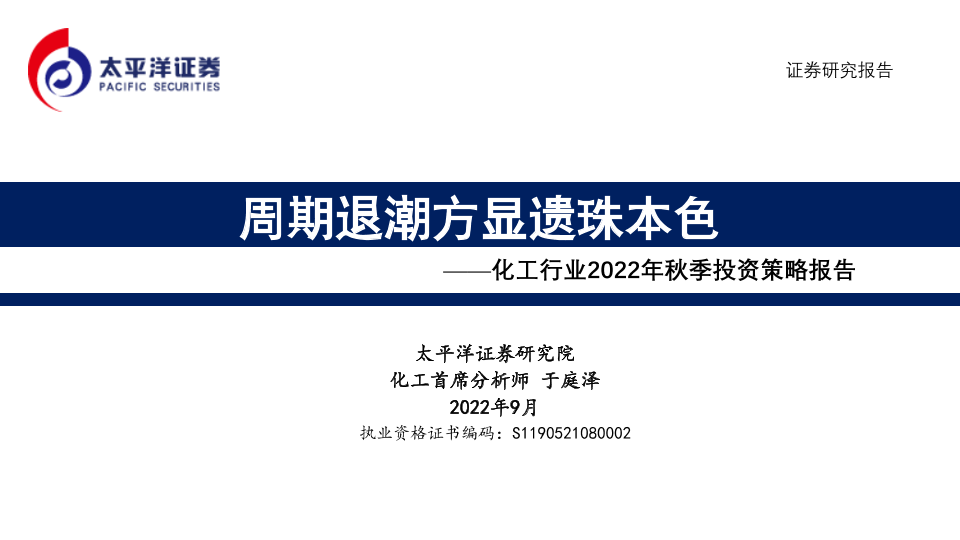 【太平洋证券】【202209】化工行业2022年秋季投资策略报告:周期退潮方显遗珠本色-60页