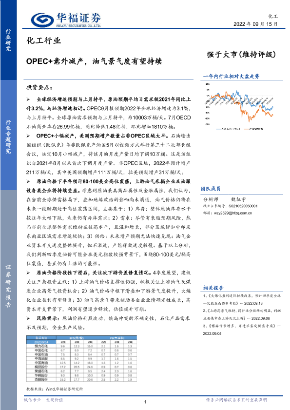 【华福证券】【20220915】化工行业:OPEC+意外减产,油气景气度有望持续-12页