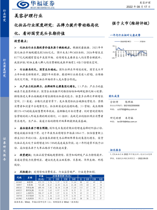 【华福证券】【20220917】美容护理行业:化妆品行业深度研究:品牌力提升带动格局优化,看好国货龙头长期价值-30页