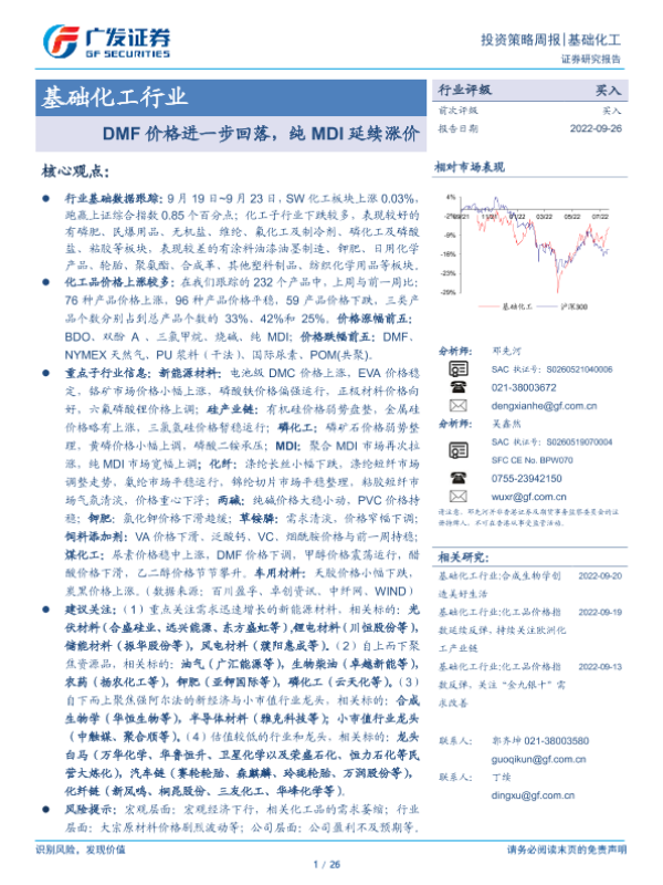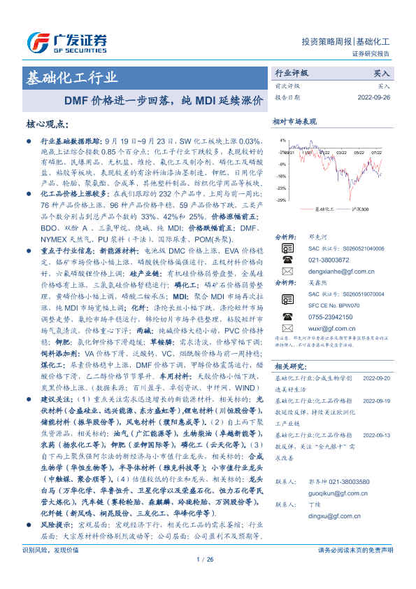 【广发证券】【20220926】20220926-广发证券-基础化工行业投资策略周报:DMF价格进一步回落,纯MDI延续涨价-26页