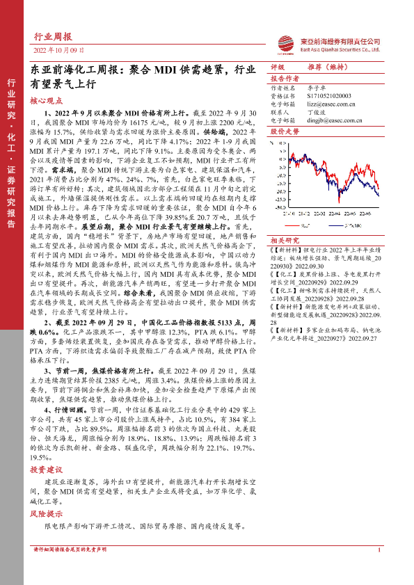【东亚前海证券】【20221009】东亚前海化工周报:聚合MDI供需趋紧,行业有望景气上行-23页