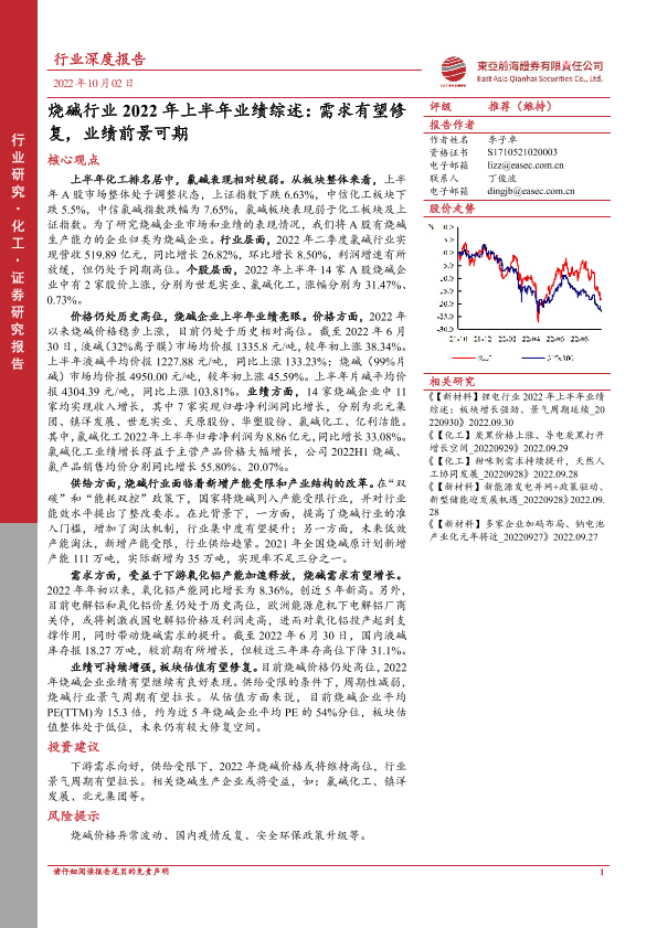 【东亚前海证券】【20221002】烧碱行业2022年上半年业绩综述:需求有望修复,业绩前景可期-24页