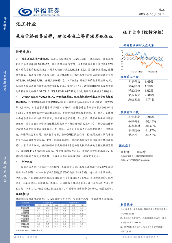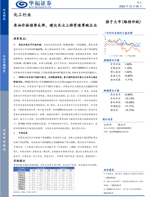 【华福证券】【20221009】化工行业:原油价格强势反弹,建议关注上游资源禀赋企业-19页