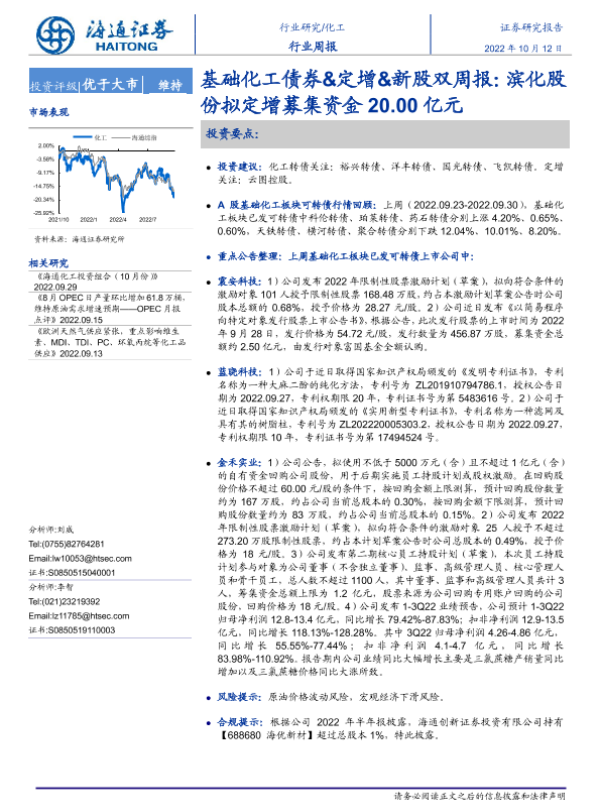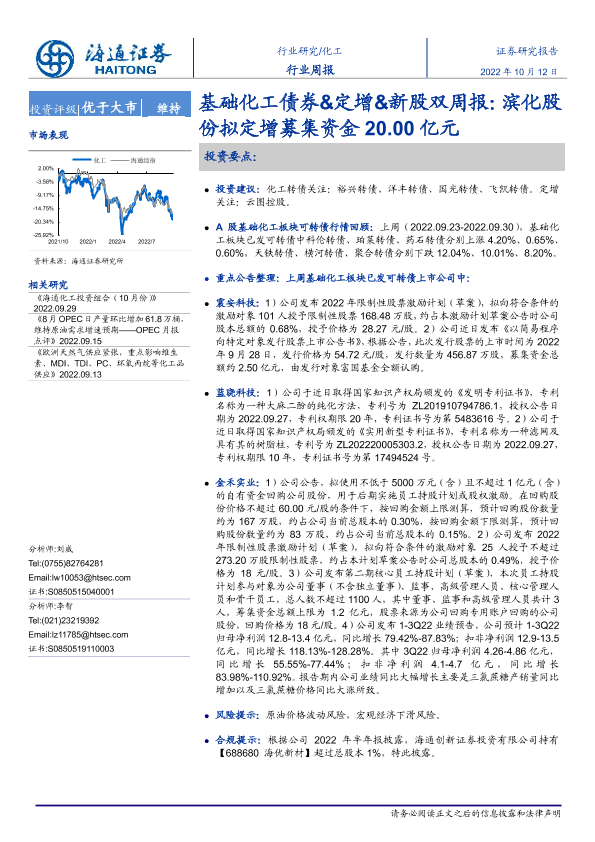 【海通证券】【20221012】基础化工债券&定增&新股双周报:滨化股份拟定增募集资金20.00亿元-17页