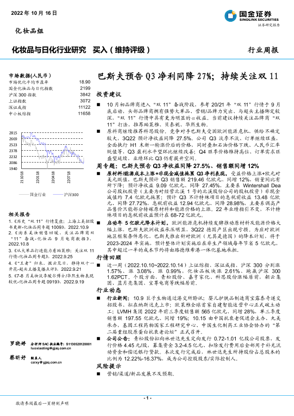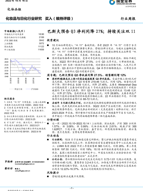 【国金证券】【20221016】20221016-国金证券-化妆品与日化行业研究:巴斯夫预告Q3净利同降27%;持续关注双11-10页
