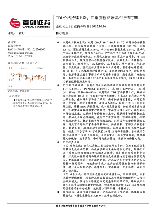 【首创证券】【20221016】20221016-首创证券-基础化工行业简评报告:TDI价格持续上涨,四季度新能源装机行情可期-16页