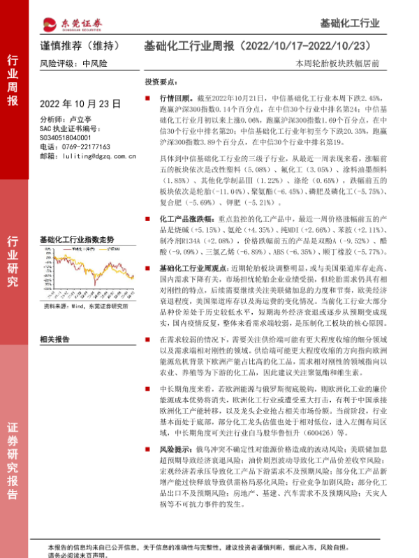 【东莞证券】【20221023】20221023-东莞证券-基础化工行业周报:本周轮胎板块跌幅居前-12页