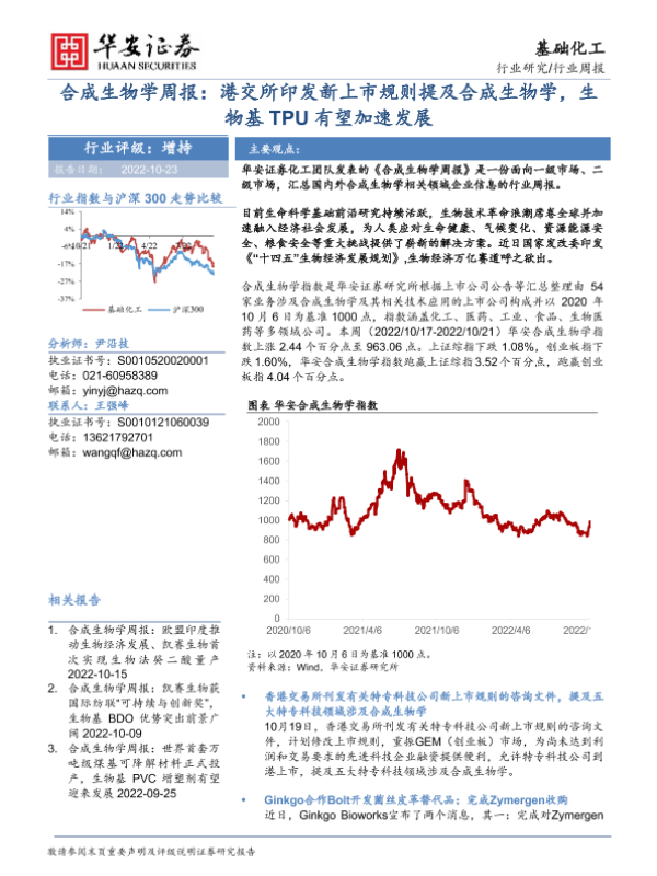 【华安证券】【20221023】20221022-华安证券-基础化工行业周报:合成生物学周报:港交所印发新上市规则提及合成生物学,生物基TPU有望加速发展-25页