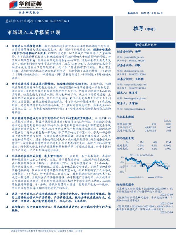 【华创证券】【20221016】基础化工行业周报:市场进入三季报窗口期-59页