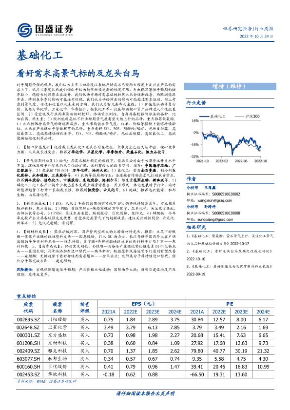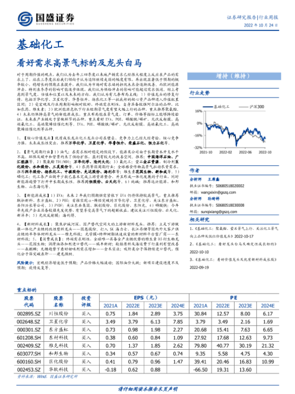 【国盛证券】【20221024】基础化工行业周报:看好需求高景气标的及龙头白马-16页