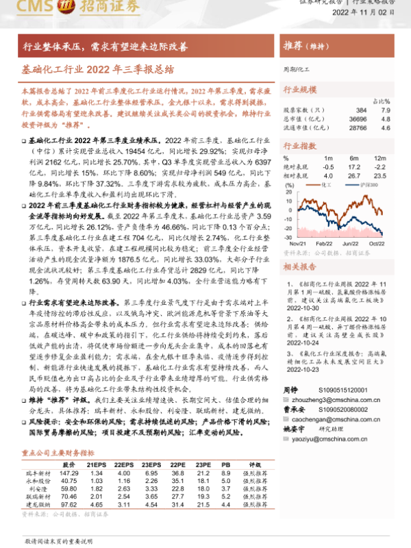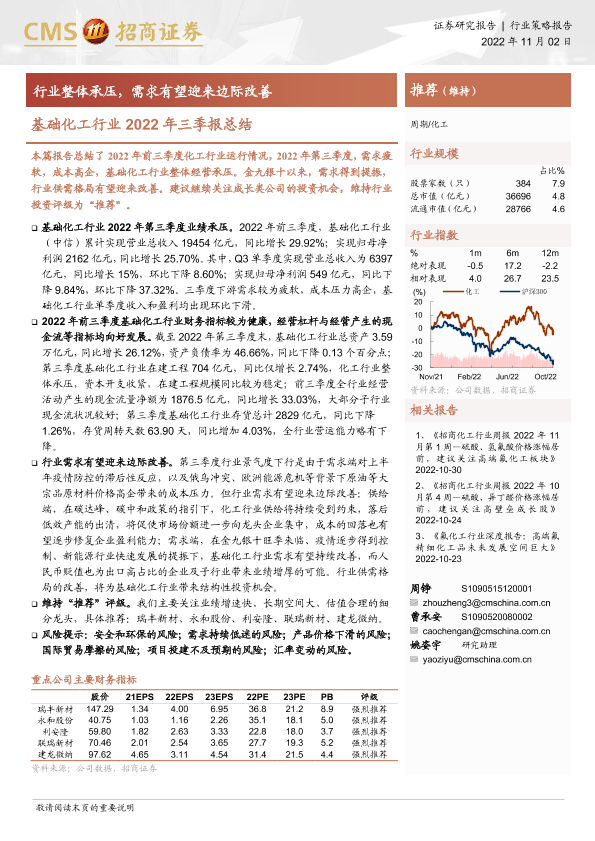 【海通证券】【20221102】基础化工行业2022年三季报总结:行业整体承压,需求有望迎来边际改善-19页