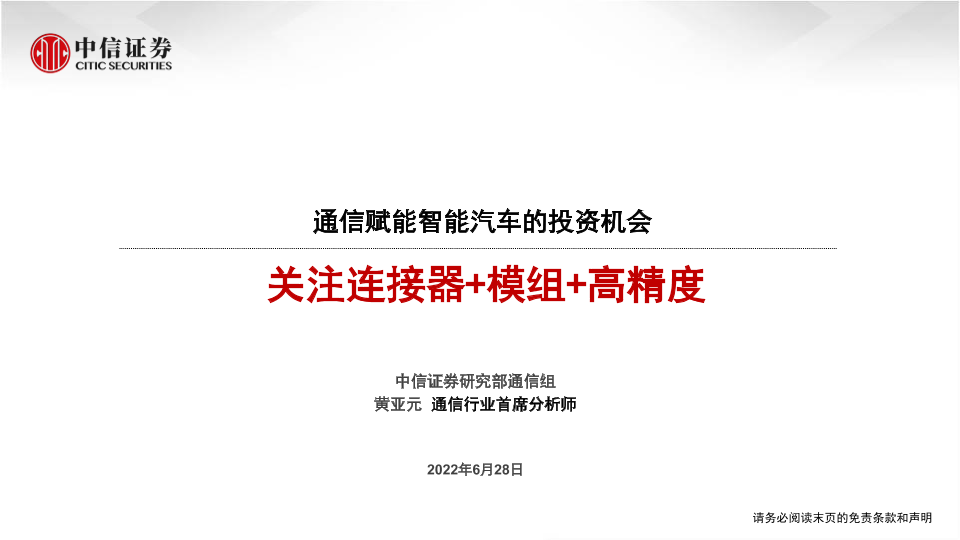 【中信证券】【20220628】通信行业赋能智能汽车的投资机会:关注连接器+模组+高精度-26页
