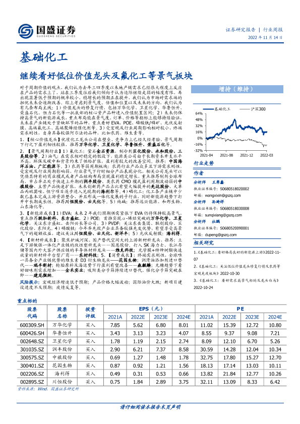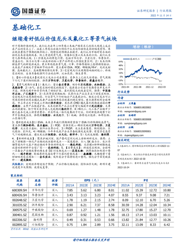 【国盛证券】【20221114】20221114-国盛证券-基础化工行业周报:继续看好低位价值龙头及氟化工等景气板块-10页