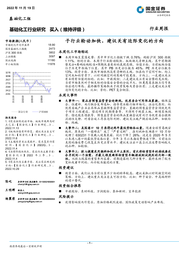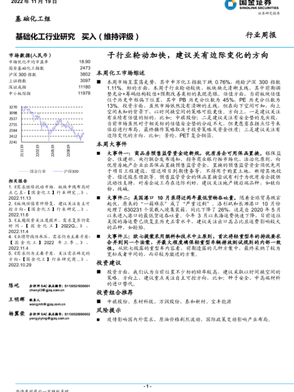 【国金证券】【20221119】基础化工行业研究:子行业轮动加快,建议关有边际变化的方向-25页